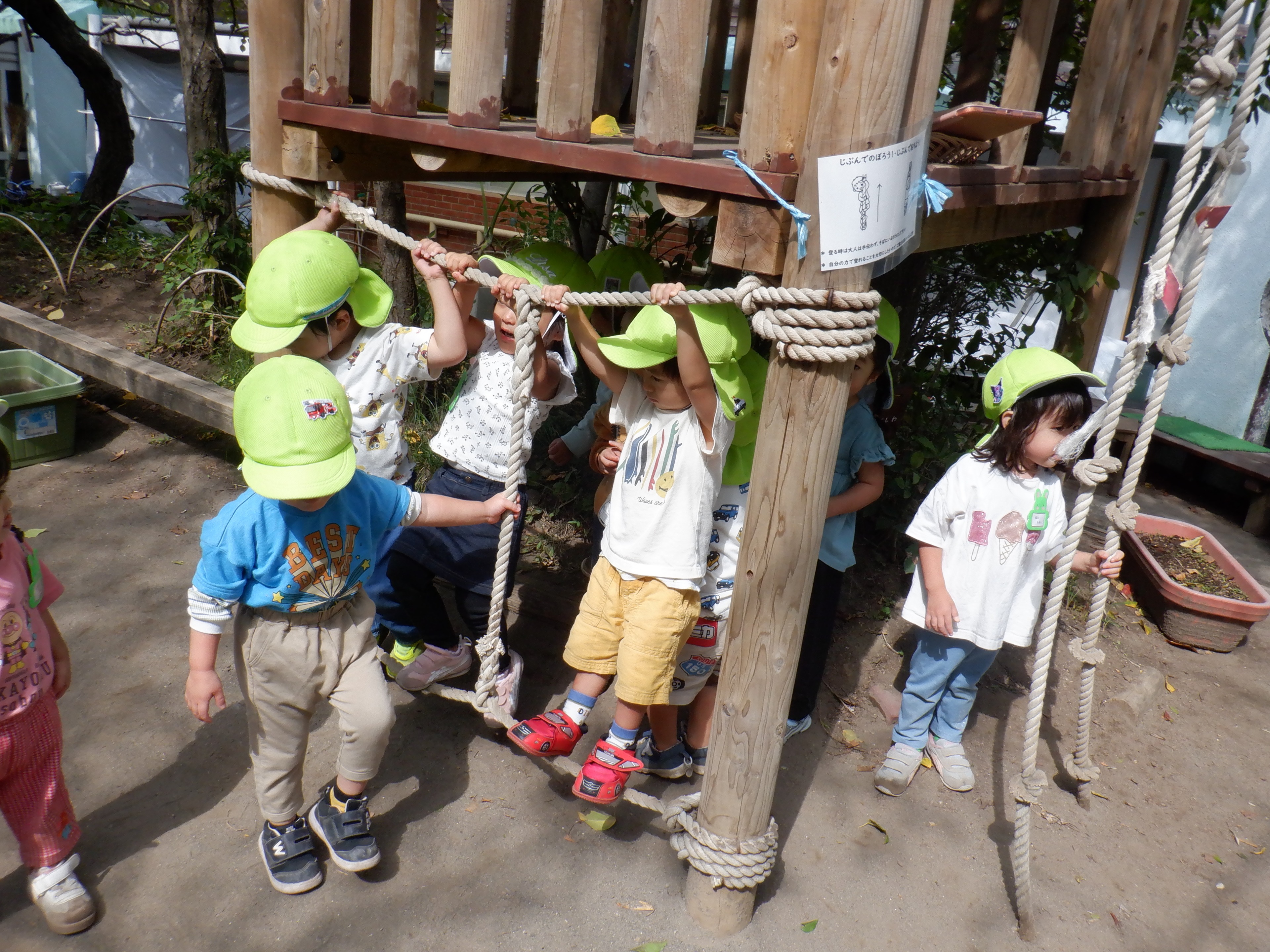部屋であそんだあとは、園庭でたっぷりと体をつかってあそびます。